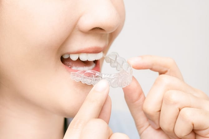 ワイヤーによる歯列矯正を躊躇してしまう理由の一つに、見た目の悪さが挙げられます。インビザラインは、透明なマウスピース型矯正装置を使用するため、歯列矯正をしていることが見た目にも分かりにくく、目立ちにくいのでおすすめです。